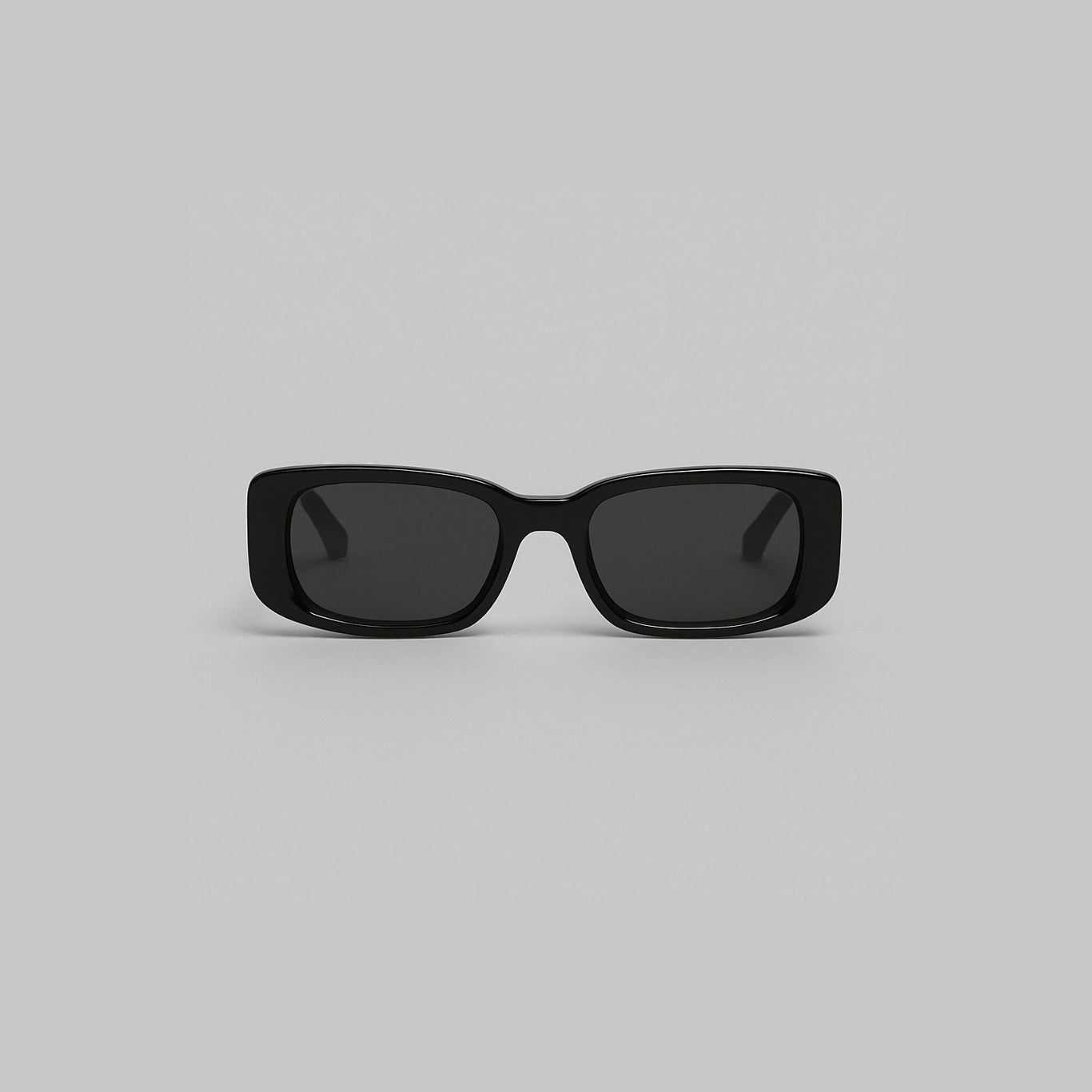 The Ancient Studios® AS021 Sunglasses in black feature a bold rectangular silhouette with a thick, full-rim frame and black-tinted lenses for a sleek, modern look. Finished with a subtle silver AS021 logo, this unisex accessory merges statement design with everyday wearability.