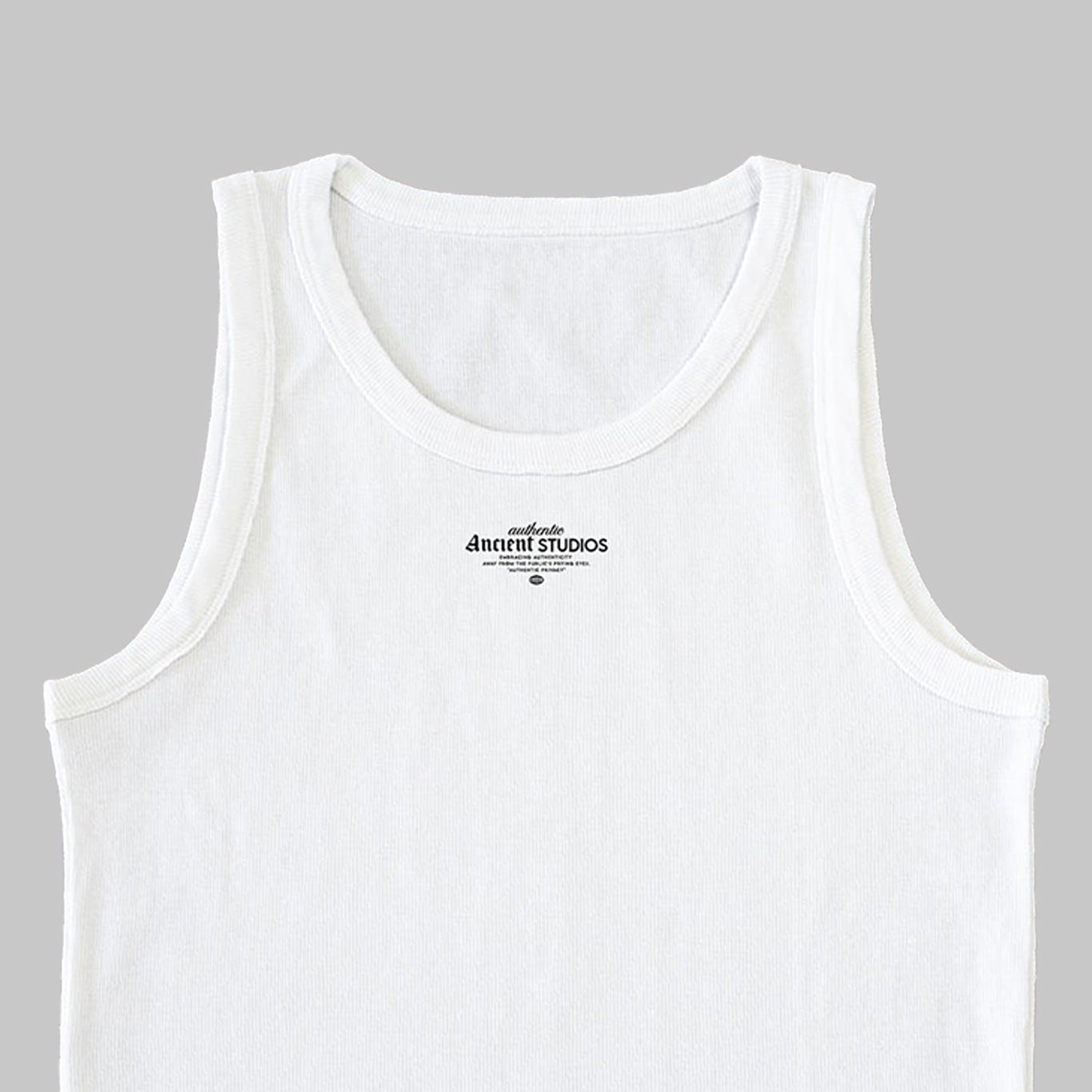 The Privacy Tank Top features a regular fit with a ribbed fabric construction for a sleek, comfortable feel. Designed as a unisex essential, it has a round collar, sleeveless cut, and a bold Ancient Studios® print on the front for a signature touch.