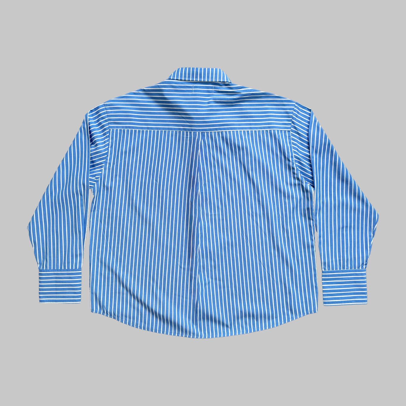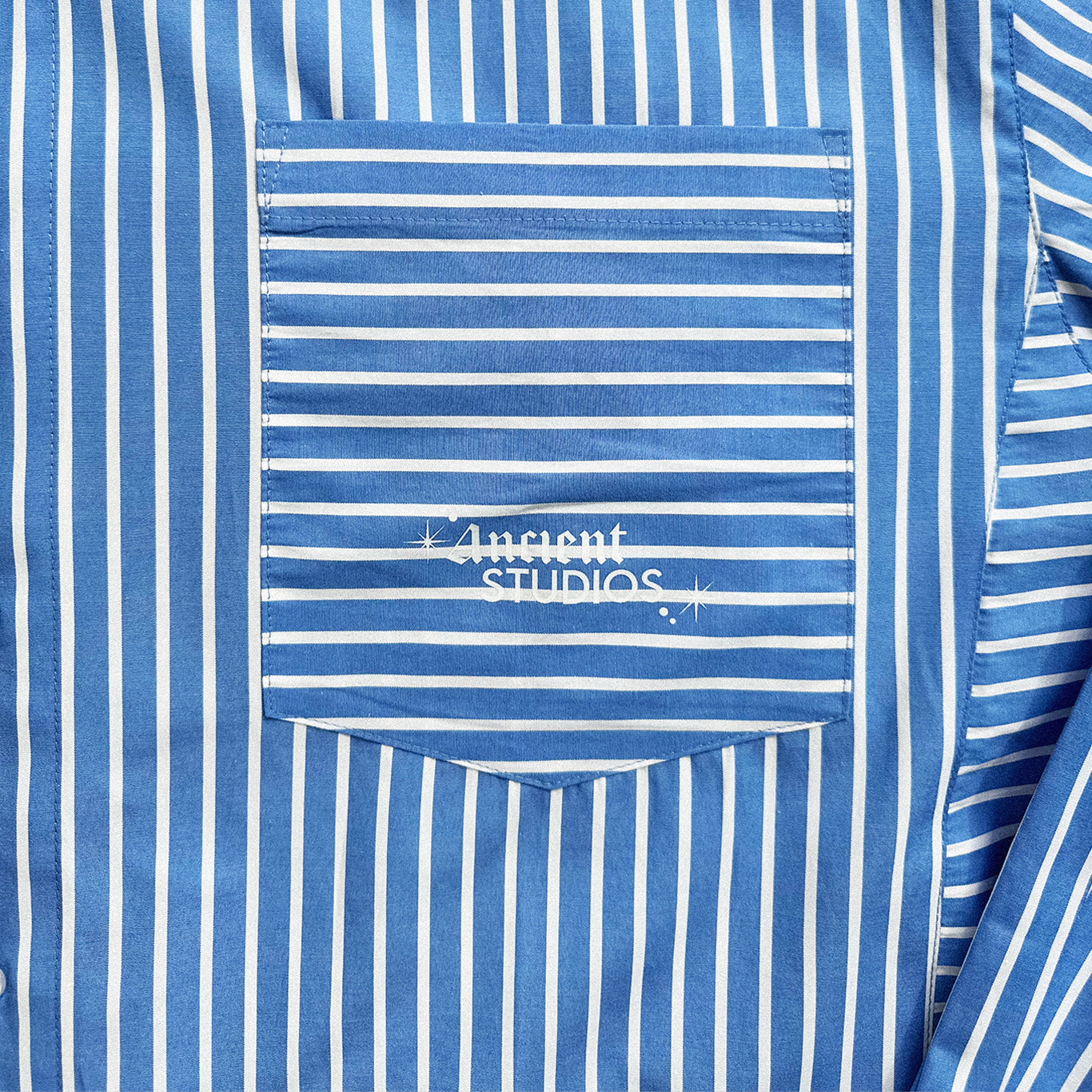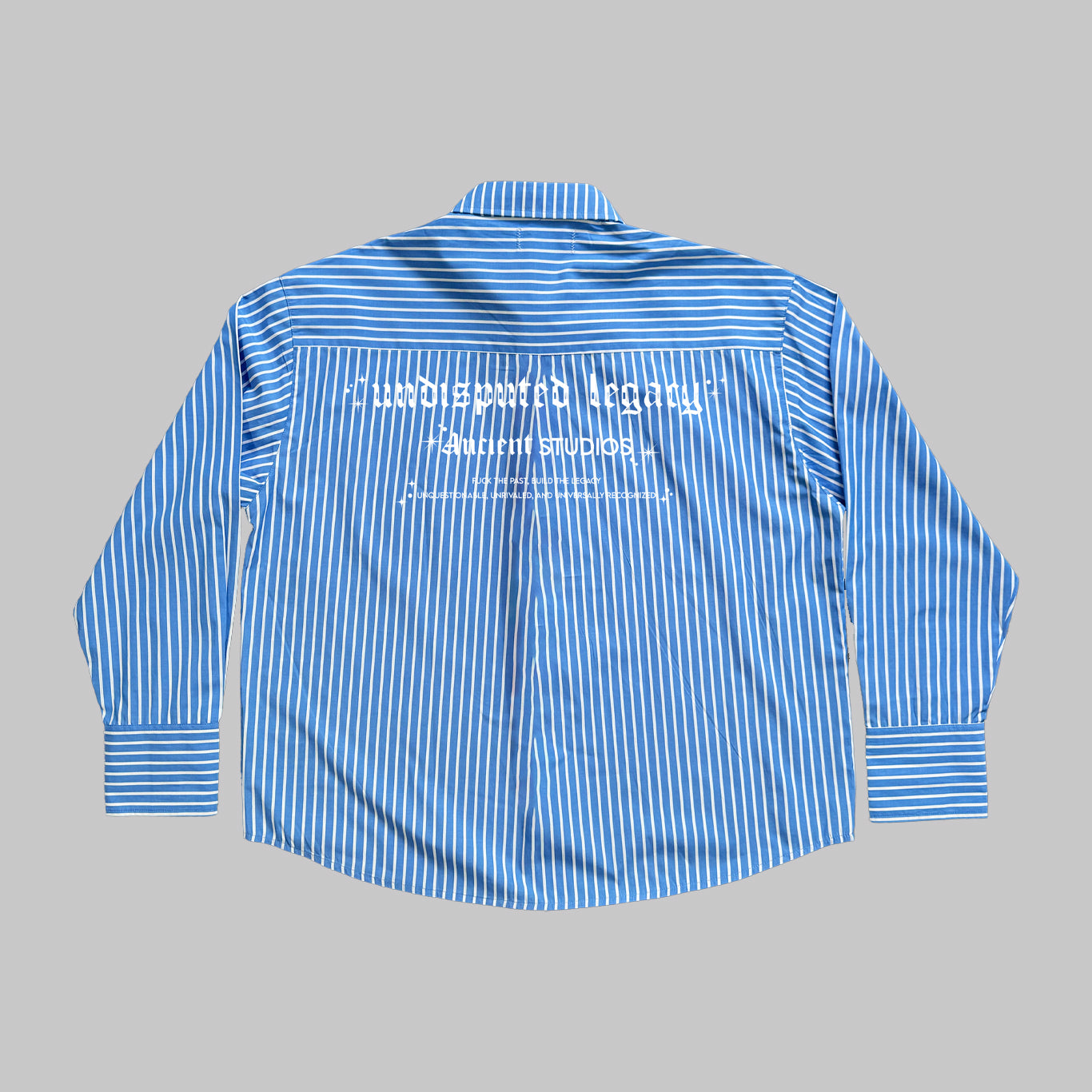 The Striped Legacy Shirt in light blue features a regular fit with a contrast pattern, a classic Kent collar, and a chest pocket for a timeless yet modern look. Finished with white buttons, refined pattern details, a bold Ancient Studios® print, and a soft handfeel, this unisex piece offers effortless sophistication.