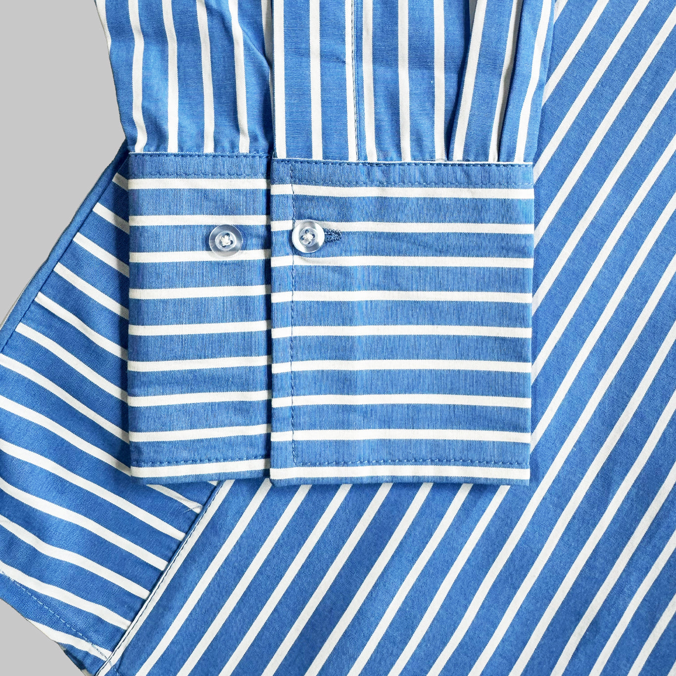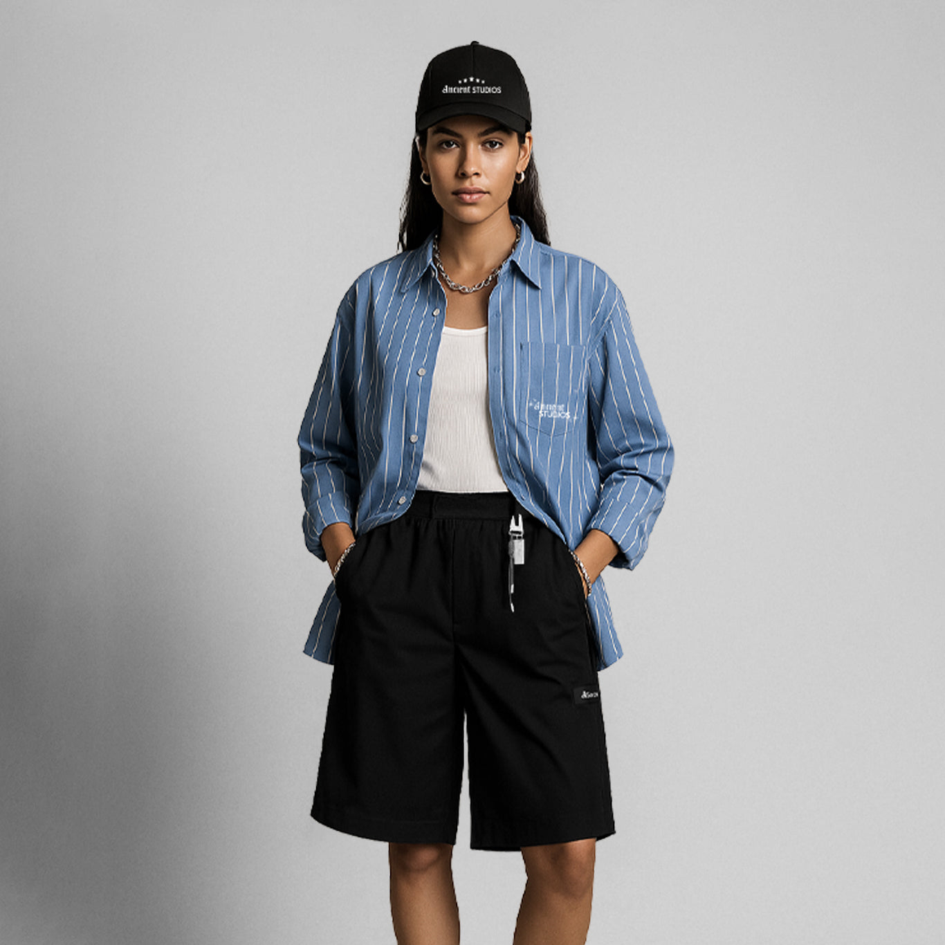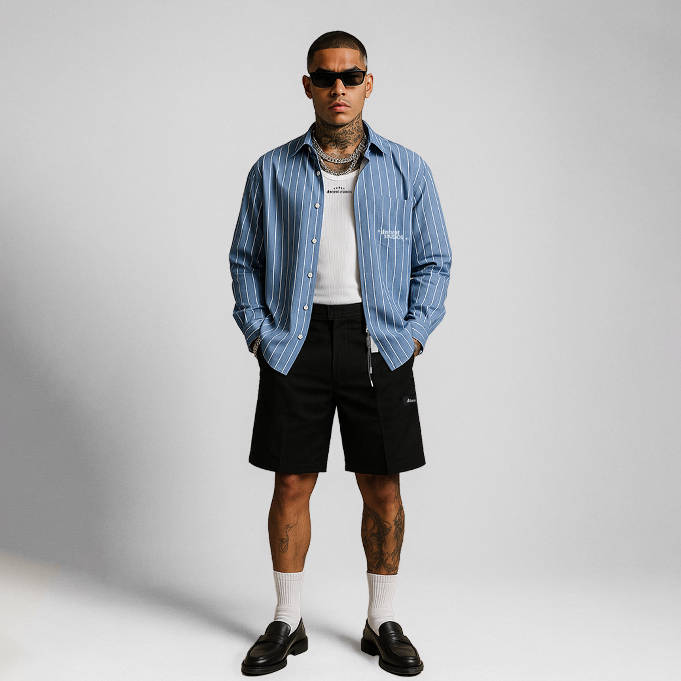 The Striped Legacy Shirt in light blue features a regular fit with a contrast pattern, a classic Kent collar, and a chest pocket for a timeless yet modern look. Finished with white buttons, refined pattern details, a bold Ancient Studios® print, and a soft handfeel, this unisex piece offers effortless sophistication.