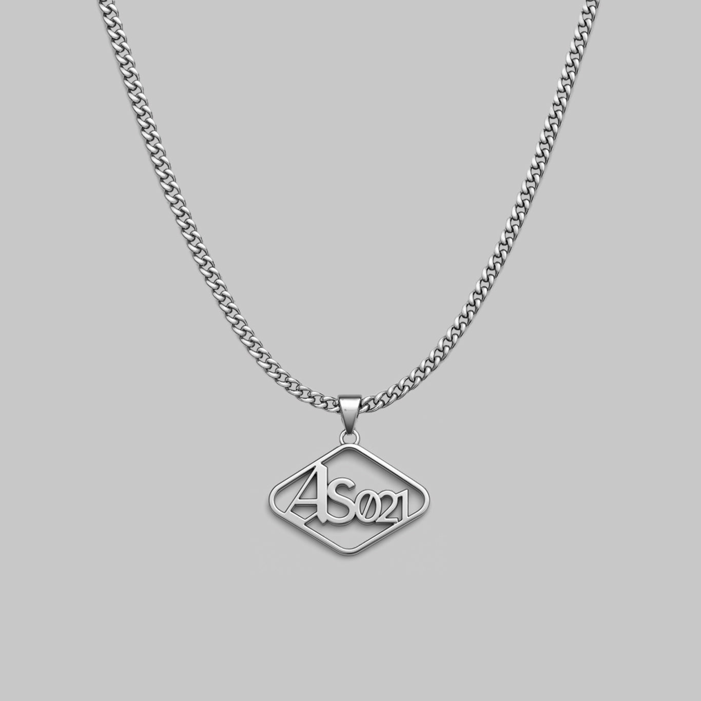 The AS021 Necklace in silver is more than just jewelry — it’s a signature. Designed with a custom pendant on a sleek Cuban chain, it reflects our identity and yours. Finished in polished stainless steel, this piece is made to move with you — every day, everywhere.